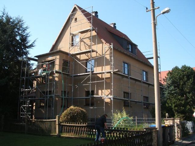 Durch die nachträgliche Hohlraumdämmung in einem Einfamilienhaus in Dresden sollen die Außenwände bessere Wärmedämmeigenschaften erhalten.